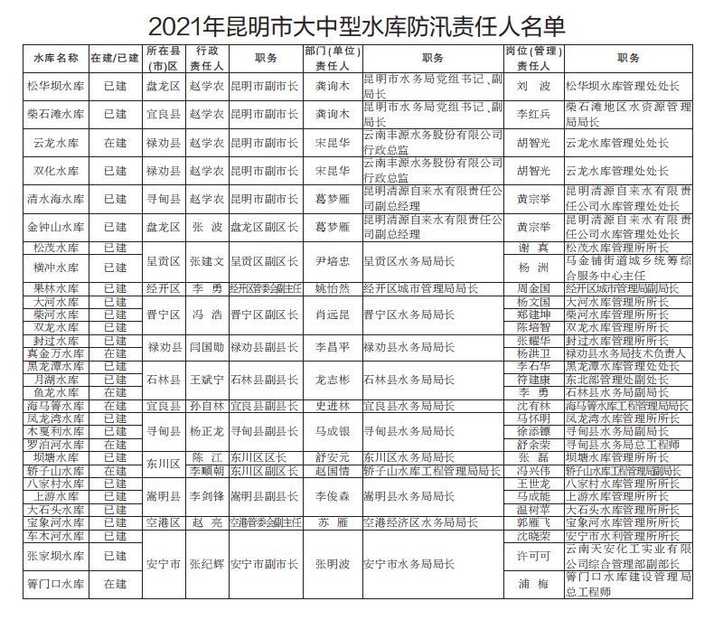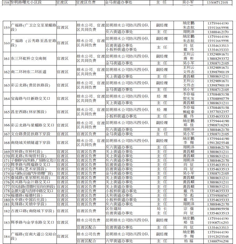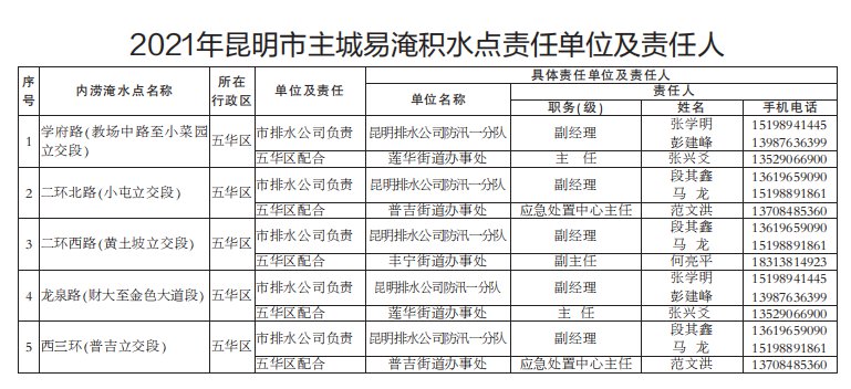 2021年昆明市防汛責任人公布/積水路段