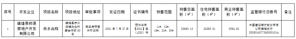 鎮(zhèn)雄縣住房和城鄉(xiāng)建設(shè)局關(guān)于赤水合院項目《商品房預(yù)售許可證明》辦理情況的通告
