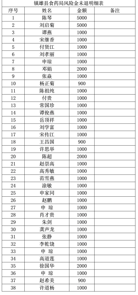 鎮(zhèn)雄縣市場監(jiān)督管理局關(guān)于退還保證金的公告