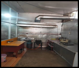 2、后廚各類物品擺放整齊,加裝三防設(shè)施、帶蓋垃圾桶。灶臺、地面油污清理干凈。