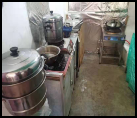 2、后廚衛(wèi)生差,物品擺放雜亂,垃圾桶未帶蓋。