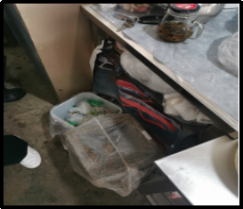 2、后廚衛(wèi)生差,物品擺放雜亂,垃圾桶未帶蓋。